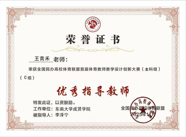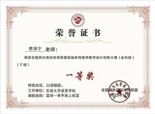 本次比赛共有来自全国62所民办高校,300余位体育教师参会,200余位体育教师参赛,包含线上材料评审(包括教学设计与教案)与现场说课(包括说课及现场提问)两个部分。最终经过多位专家考核,我校基础部体育教研室李泽宁老师荣获大赛一等奖,王青禾老师荣获“优秀指导教师”。